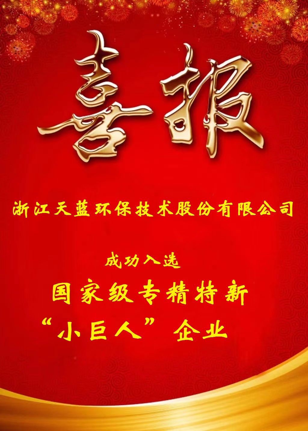 近日,浙江省經(jīng)濟(jì)和信息化廳發(fā)布了《關(guān)于浙江省第四批專精特新“小巨人”企業(yè)和第一批專精特新“小巨人”復(fù)核通過企業(yè)名單的公示》,天藍(lán)環(huán)保憑借在大氣污染治理領(lǐng)域的技術(shù)創(chuàng)新綜合實(shí)力和市場(chǎng)占有率,成功入選國家級(jí)專精特新“小巨人”企業(yè)名單。
